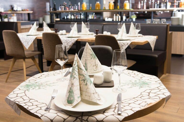 Ferner bietet MANK eine Vielfalt an Designs und Mustern, die auch im nachhaltigen Segment verfügbar sind. Ob unifarben, mit eleganten Strukturen oder in klassischen Varianten wie Streifen, Karo oder Punkte – die Gestaltungsmöglichkeiten bleiben vielseitig. Damit können Gastronomiebetriebe ihre ökologische Ausrichtung authentisch kommunizieren und zugleich individuelle Akzente in der Tischgestaltung setzen.