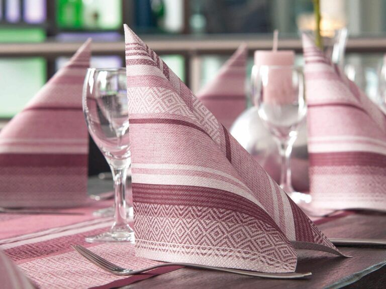 Diese Premium-Produkte sind ideal für Restaurants der gehobenen Preisklasse, Hotels und exklusives Event-Catering. Dank ihrer robusten Beschaffenheit lassen sich auch anspruchsvolle Falttechniken sicher umsetzen – eine Eigenschaft, die besonders bei stilvoller Tischgestaltung gefragt ist. Ergänzt durch eine Vielfalt an Farben und Mustern, darunter auch zeitlose Designs mit Streifen, Karo oder Punkten, eröffnen Tissue-Deluxe-Servietten zusätzliche Möglichkeiten der kreativen Tischinszenierung.